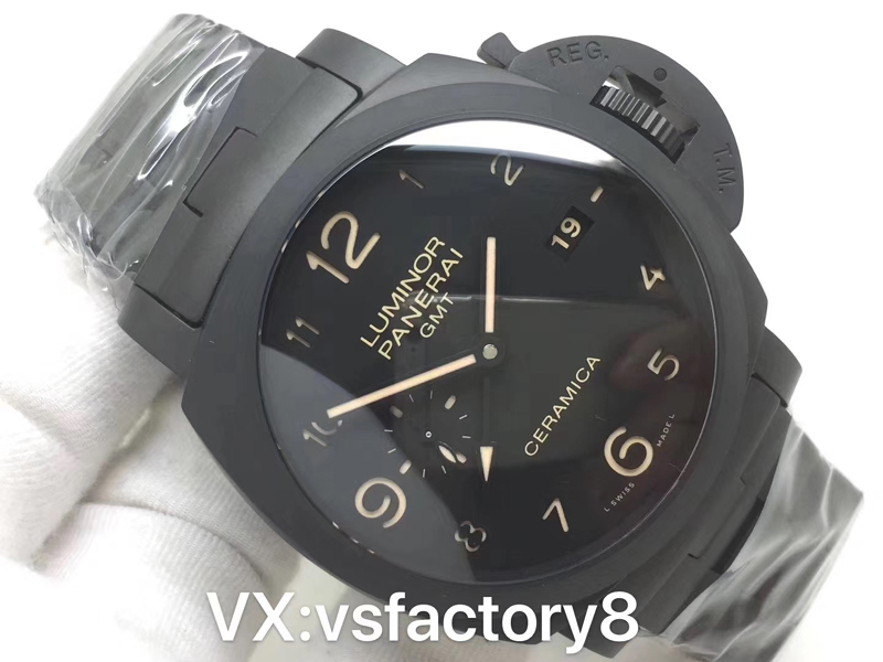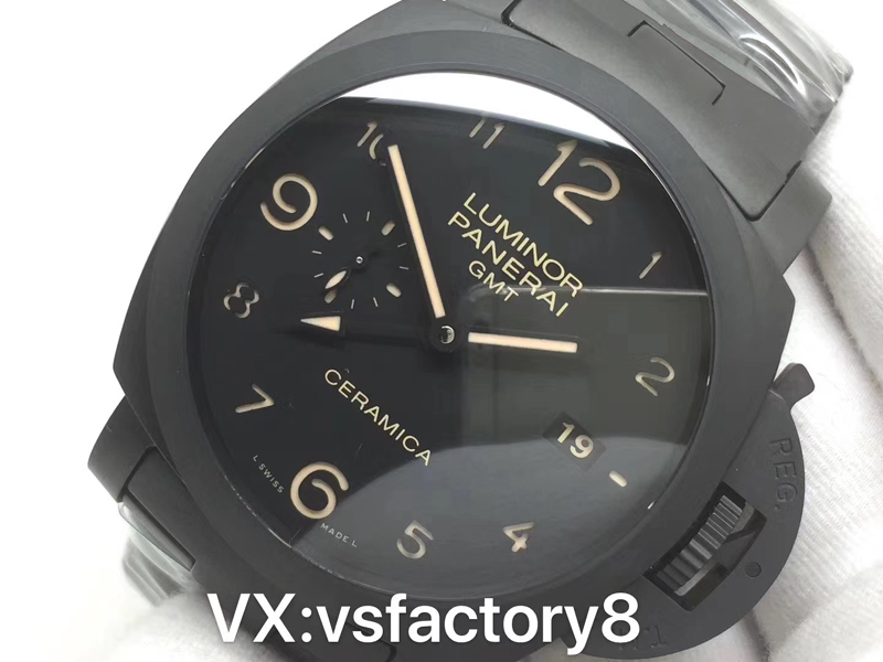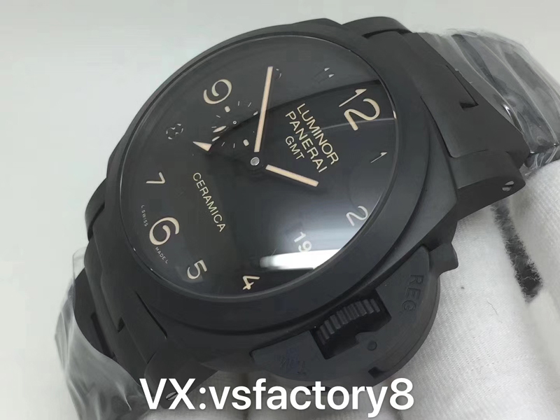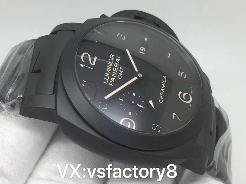 1:最引人矚目的是此款沛納海438的外觀還原,VS工廠推出此款是入手了正版沛納海438進行拆解配件還原,表殼的材質全面采納了跟原裝一致全陶瓷材質,經過不斷的燒制,讓表殼完美呈現出跟原裝一致的質感,啞光黑色的質感讓復刻表的每個細節都非常高級,當然,此款有一個弱點,就是比較脆弱!