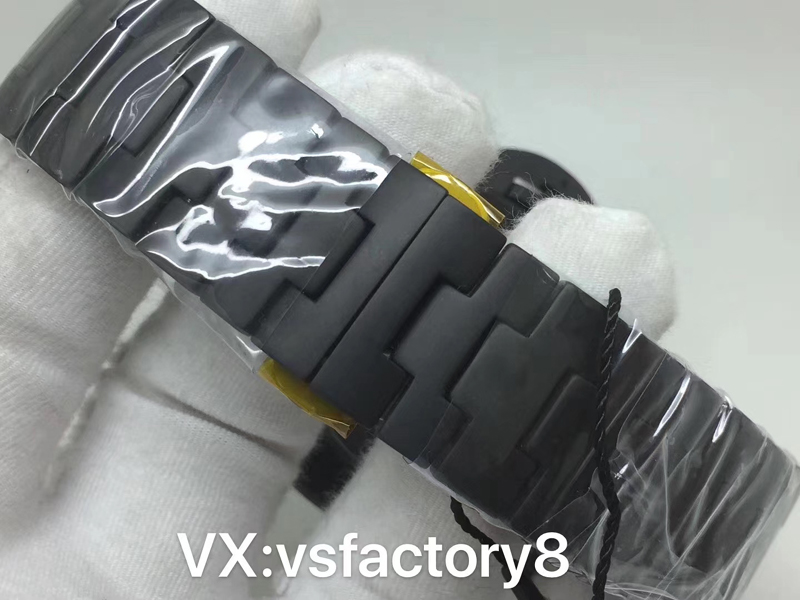 7:表鏈和表扣還原,VS廠沛納海438的表鏈和表扣都應用了正版還原全陶瓷設計,表鏈的每一個環節都經過嚴格的工藝控制,確保無論是佩戴舒適度還是外觀質量都達到頂級水平,采用了隱形扣設計,每個零件都是電鍍黑處理,整個陶瓷表不懼劃痕,不褪色,就算深磨成粉粒也還是黑色。