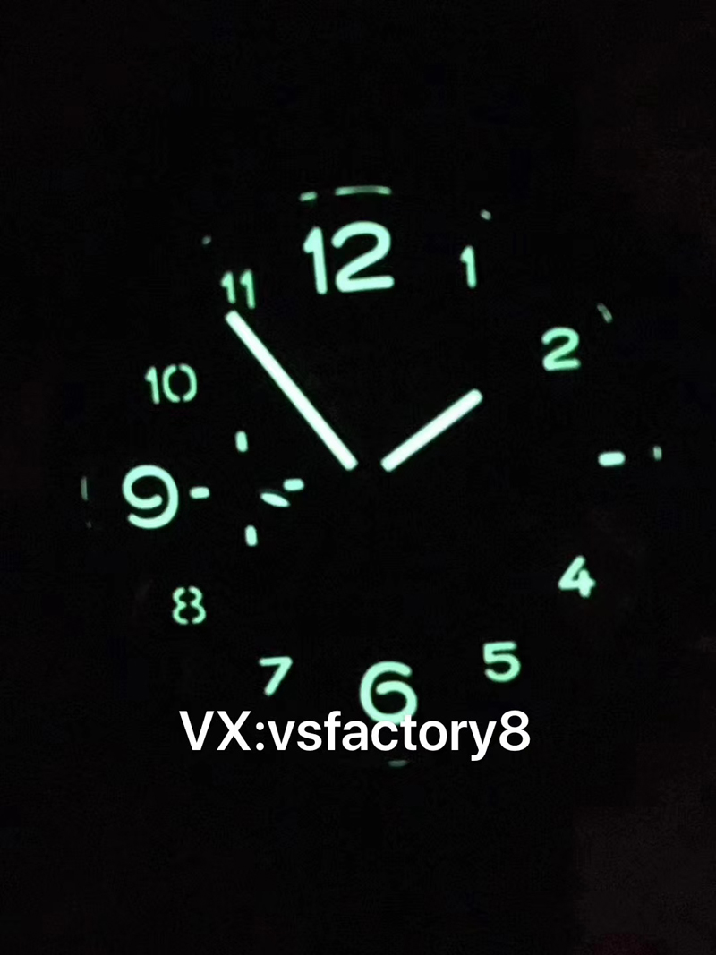 4:VS廠這款沛納海438復刻腕表的表盤設計簡約而不失優雅,采用黑色底面,搭配淺米色色的時標和指針,GMT針,形成鮮明對比,十分易讀,表盤時標刻度采用了阿拉伯數字,指針和刻度并填充了瑞士夜光粉涂層,12點鐘位置的沛納海logo增加了品牌的識別度,此外,表盤中央的秒針靈動而流暢,給整個表盤增添了動感,足以證明了VS廠對沛納海438的復刻工藝非常心切!