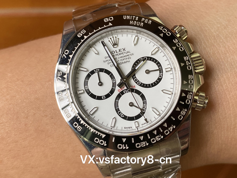 1:VS廠的勞力士新版迪通拿熊貓迪的外觀還原與正版一致,表殼采用了市場上最流通的904L精鋼材質(zhì),側(cè)面經(jīng)過精細拋光和打磨,展現(xiàn)出了與原版一致的光澤感和質(zhì)感,而這一點是VS工廠做到了完全對版,表帶是復刻表的重要組成部分。