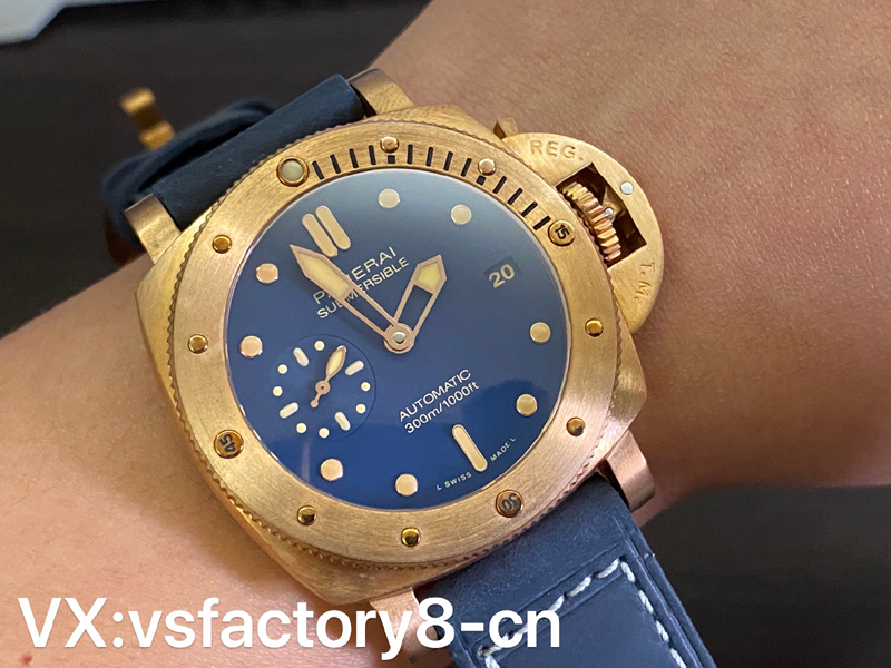 2:VS廠沛納海pam1070復刻表的青銅表殼采用了高精度的數控技術,使得表殼的輪廓、細節均與正品毫無二致,青銅表殼上的每一個打磨細節都經過了精細的打磨處理,給人一種如新的一般光澤感,同時,表殼右側復刻還原正版一致青銅“護橋”設計,材質上一并原裝同步,護橋上刻字細節處理非常立體。