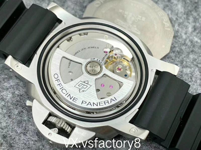 4:VS廠沛納海PAM683潛行系列復(fù)刻表搭載了工廠自主研發(fā)OP XXXIV一體機芯,機芯采用28,800次/小時的頻率,確保了精準的走時性能,一個發(fā)條盒,高標準的防震效果,日歷功能也完全對版正品,機芯的性能也在復(fù)刻領(lǐng)域中名聲傳開,的的確確是非常一顆穩(wěn)定的自產(chǎn)機芯。
