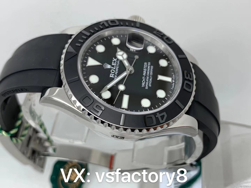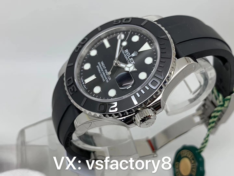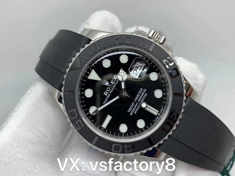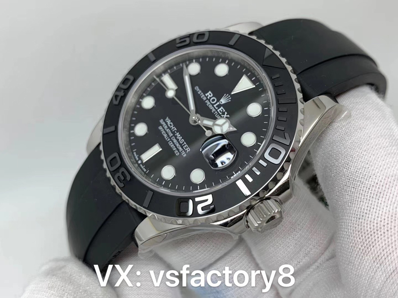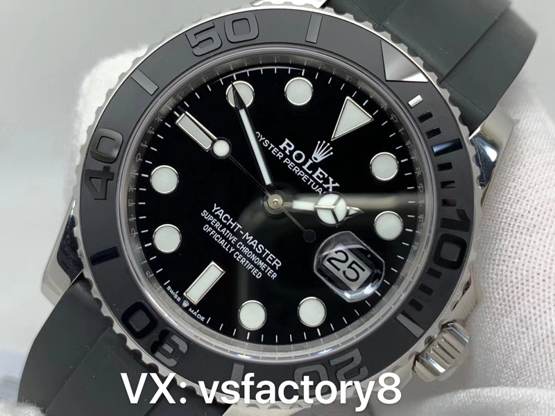 4:VS廠在勞力士白金游艇表盤復刻還原設計是最為關鍵的一部分,VS廠此款白金游艇復刻表的表盤清晰可讀,采用了經典的搪瓷黑色材質復刻,在光澤和質感上如同原版一致,表盤中央的“Rolex”字樣”標識,都展示了VS廠的細致工藝,指針設計也是一大亮點,大三針的結構讓時間讀取變得更加直觀,刻度打磨圓潤,指針和刻度均填充了瑞士夜光粉涂層,效果完美一致復刻。