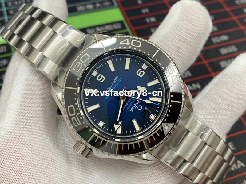 1:如今,VS工廠通過其高超的復刻技術,將這一歐米茄漸變藍海王海馬600米經典之作復刻了出來,讓更多的表迷能夠體驗和擁有,表殼部分采用316L精鋼材質,經過精細打磨,光澤感極佳,同步原版一致尺寸45.5mm,厚度18mm,而這一點完全對版了原版一致尺寸。