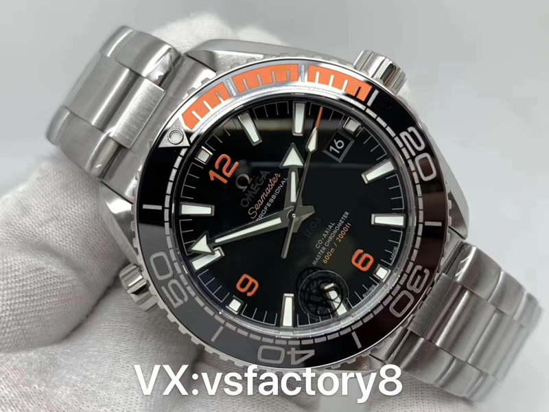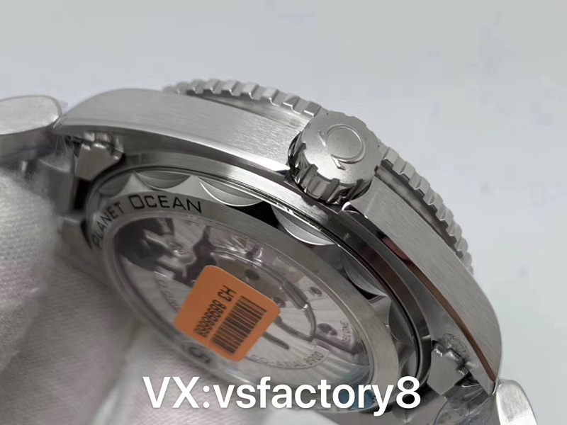 2:VS廠對表殼經過高精度CNC切割及手工拋光,兩者結合使得表殼的線條流暢自然,極具立體感,此外,VS廠在此款歐米茄海馬600米的表圈搭載了終極版黑色陶瓷表圈,黑色陶瓷表圈立體感非常強烈,最值得矚目的是十二點位置到三點位置表圈同步原版一致橙色橡膠,這一點完全對版工藝材質,真正達到了最高版本。