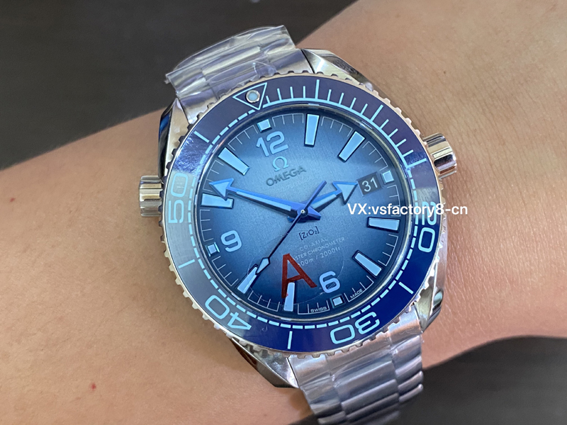 1:VS廠的歐米茄39.5mm漸變藍海馬600米海洋宇宙復刻表款在外觀復刻還原設計上,充分汲取了原裝正品歐米茄的精髓,表殼采用高品質的316L精鋼材質,經過精細的拋光處理,表面光滑,具有高雅的光澤感,表殼直徑真正達到了一致39.5mm,可以看出表殼結構以及尺寸復刻的非常到位,恰到好處的大小,無論是男士還是女士佩戴都顯得非常合適。