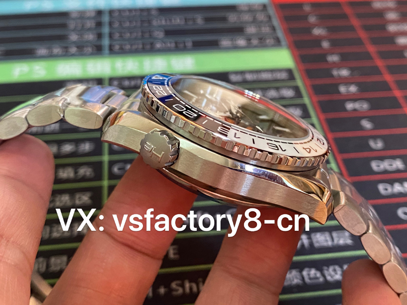 2:表圈方面VS廠也是非常用心,經過八次的開版才能達到原版一致,也是此款復刻表最注重的核心部分,VS廠表圈采取了原版一致黑白相間陶瓷材質鍛造,復刻的途中報廢材質非常眾多,而且VS廠非常的努力上進打造出市面上復刻還原最高的陶瓷圈,表圈上的潛水刻度細節(jié)處理一步到位,十二點位置復刻還原夜明珠非常的細膩!