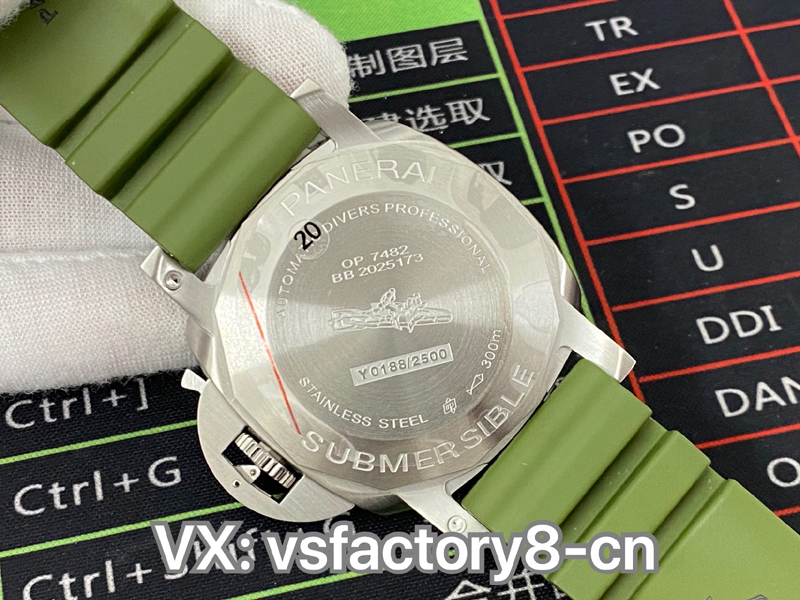 5:VS廠沛納海PAM1226的復(fù)刻過程中,嚴(yán)格把控每一個(gè)細(xì)節(jié),從表殼到表帶,每一種材料的選擇都經(jīng)過精心考量,以確保其品質(zhì)與耐用性,表帶則采用高質(zhì)量的綠色橡膠材質(zhì),經(jīng)過特殊處理,既保證了表帶的柔軟性,又增加了耐磨性,表扣則采用了磨砂316L精鋼材質(zhì)鍛造,調(diào)節(jié)便捷,并且在外觀上與原版無異,非常值得入手。