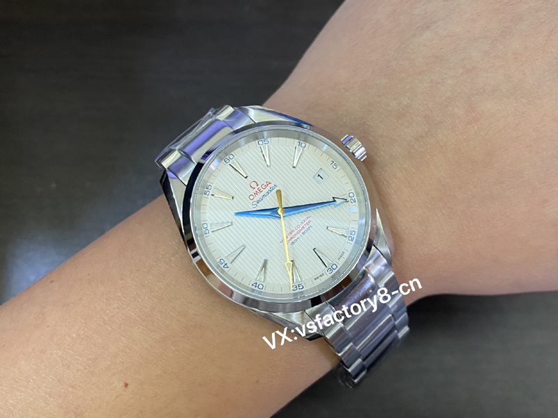 4:在做工品質方面,VS廠對歐米茄金針隊長海馬150米的每一個細節都給予了極大的重視,特別是表盤方面,VS廠按照原版一比一復刻還原白色垂直設計,三角拱形藍色時針及分針搭配鍍金秒針處理,亮漆銀色表盤上的垂直紋理,大三針的設計,小時刻度為鍍銠材質,外圍的紅色轉印設計和藍色的阿拉伯數字5分鐘位,3點鐘位置設有日歷窗口,表盤的所有細節以及結構按照原版復刻,足以證明VS廠的強烈最高版本的匠心精神。