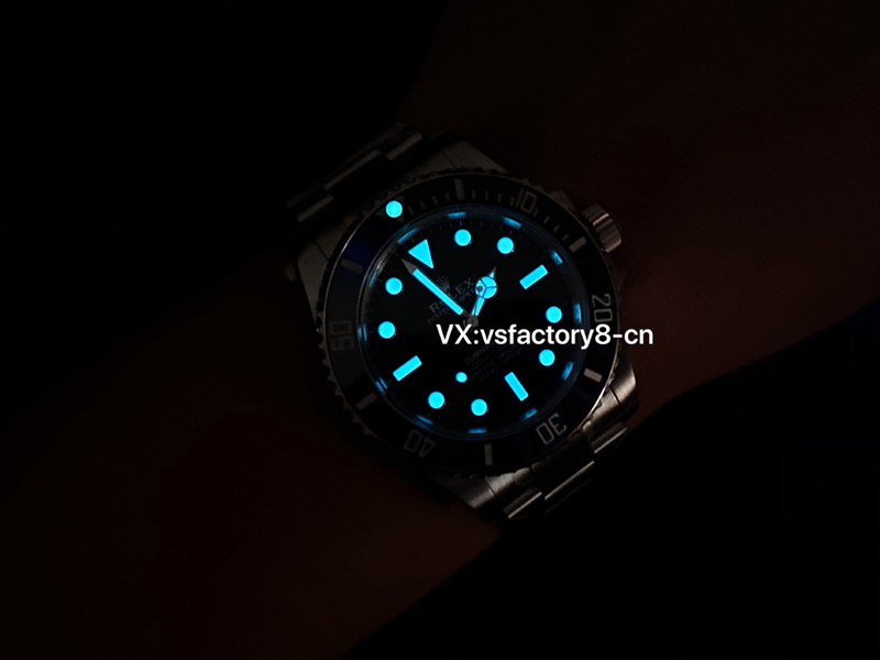 4:VS廠復(fù)刻的勞力士無(wú)歷黑水鬼表盤(pán)同步還原原版一致搪瓷黑色盤(pán)面設(shè)計(jì),質(zhì)感上和光澤感非常強(qiáng)烈,在表盤(pán)的印刷、字母的排列以及光澤度上,VS廠的技術(shù)團(tuán)隊(duì)都盡力做到與正品一致,刻度和指針邊緣打磨圓潤(rùn),并且進(jìn)行了填充瑞士夜光粉涂層,在夜光效果真正達(dá)到了還原,并且采取了實(shí)心中軸,十二點(diǎn)大皇冠立體感非常完美,做到了真正是最高版本的復(fù)刻表。