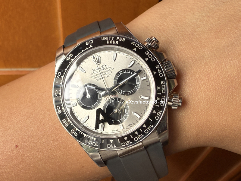 大家好,我是VS工廠小編,今年的VS廠可所謂新款眾多,也特別是在勞力士迪通拿系列上推出的款式較多,像勞力士水泥灰迪通拿4131機芯,從V1版升級V2版,也就是升級配重版,意味著在重量方面非常接近原版正品,幾乎以假亂真。