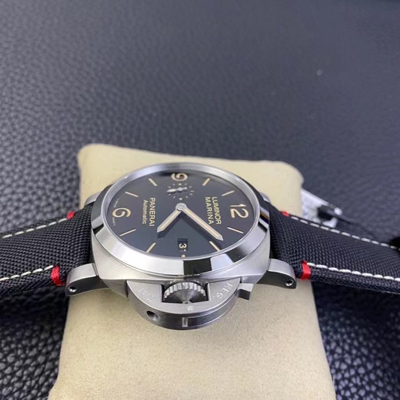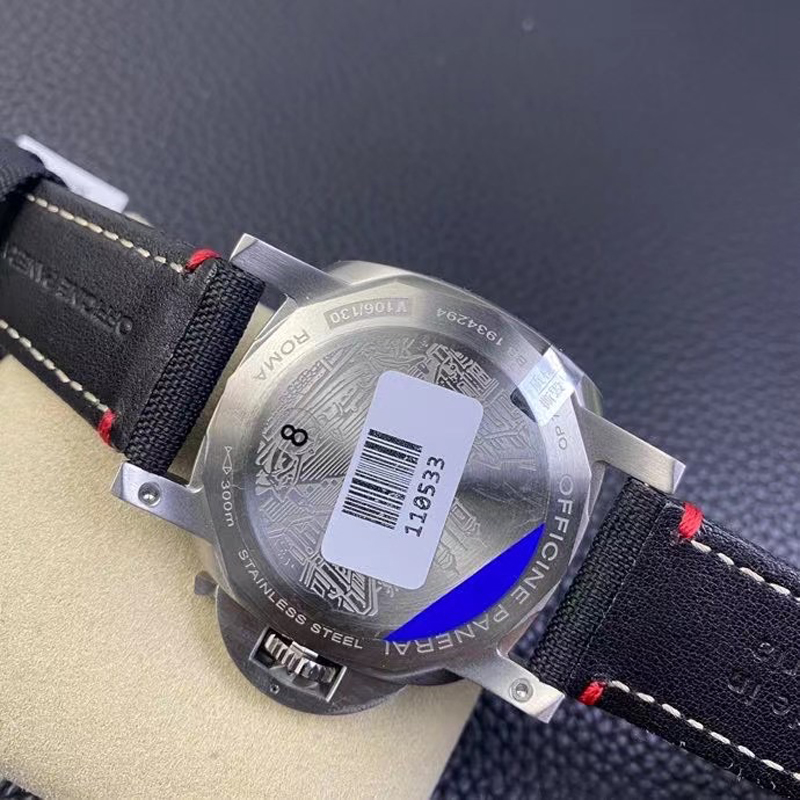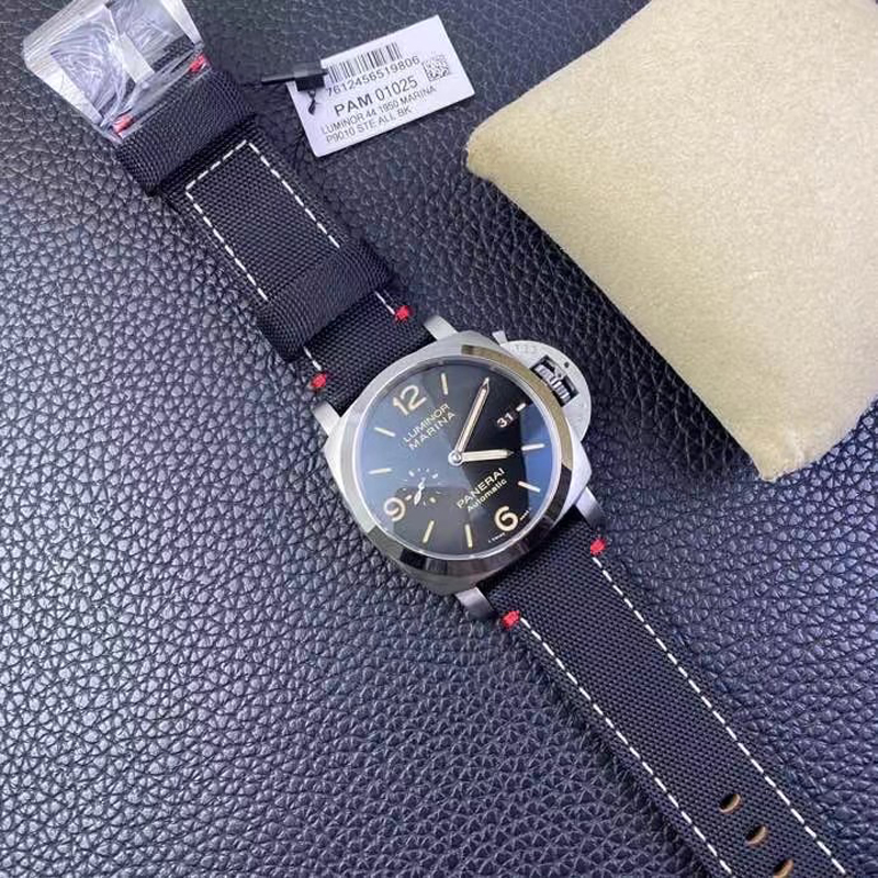 VS廠手表官網2019新品:沛納海Luminor Marina 44MM,VS廠PAM1025獨特放射紋面 羅馬底蓋,帶頭手工縫制紅線點綴 。