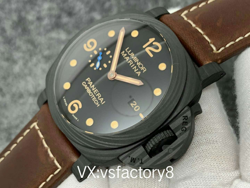 VS廠沛納海PAM661碳纖維殼,全新表殼工藝,7層碳纖維更為致密,44mm 最新版P.9010自動(dòng)機(jī)械機(jī)芯,碳纖維表殼,藍(lán)寶石鏡面,夜光表盤和指針,牛皮表帶,針扣,防水大于100米!