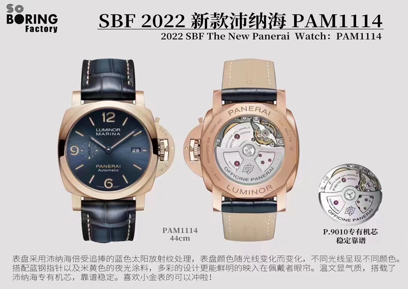 2022年 (VS工廠)旗下SBF廠新款沛納海PAM1114表盤采用沛納海倍灰色太陽放射紋處理,表盤顏色隨光線變化而變化,搭配藍(lán)鋼指針以及米黃色的夜光涂料,多彩的設(shè)計更能鮮明的映入在佩戴者眼簾,溫文顯氣質(zhì),VS廠沛納海專有機芯,靠譜穩(wěn)定。喜歡小金表的可以沖啦!