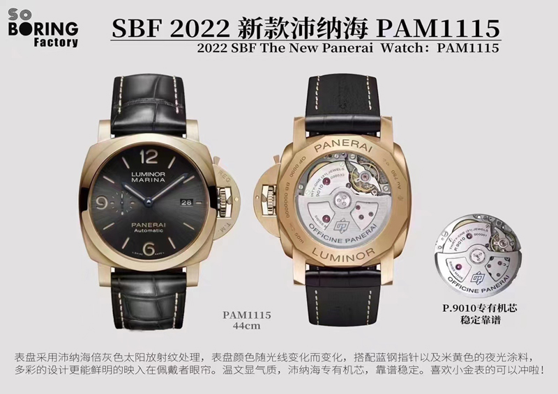 2022年 (VS廠官網(wǎng))旗下SBF廠新款沛納海PAM1115表盤采用沛納海倍灰色太陽放射紋處理,表盤顏色隨光線變化而變化,搭配藍鋼指針以及米黃色的夜光涂料,多彩的設(shè)計更能鮮明的映入在佩戴者眼簾。溫文顯氣質(zhì),VS廠沛納海專有機芯,靠譜穩(wěn)定。喜歡小金表的可以沖啦!