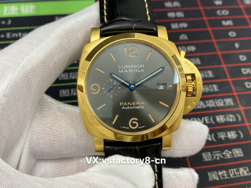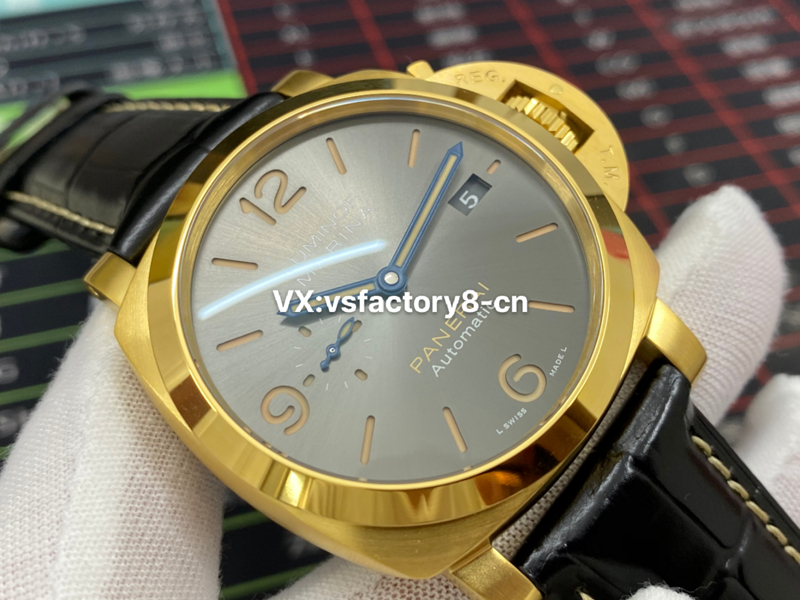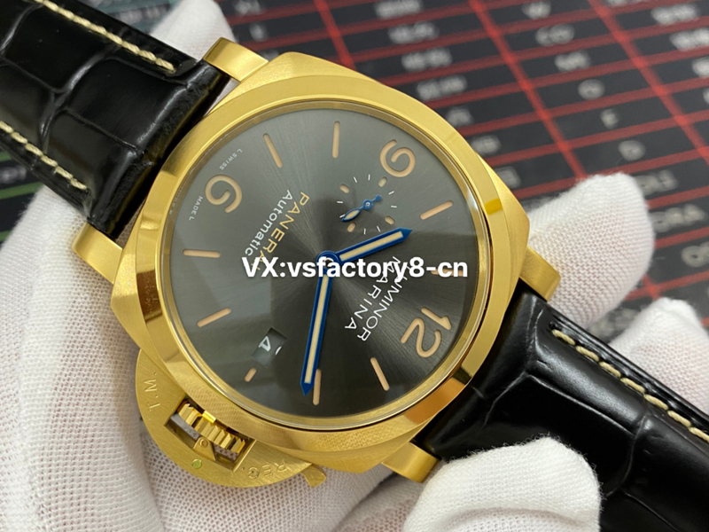 VS廠復(fù)刻表外觀其實跟其他沛納海基本沒什么區(qū)別,44mm的表徑,外觀也是精鋼進行了真空電鍍,電鍍了18K金。