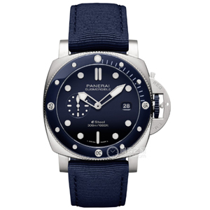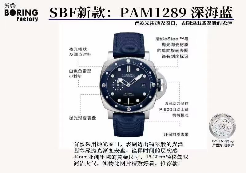 SBF廠沛納海1289采用磨砂eSteel?與拋光陶瓷材質的單項旋轉圈飾有刻度標識,夜光棒狀及圓點時標。