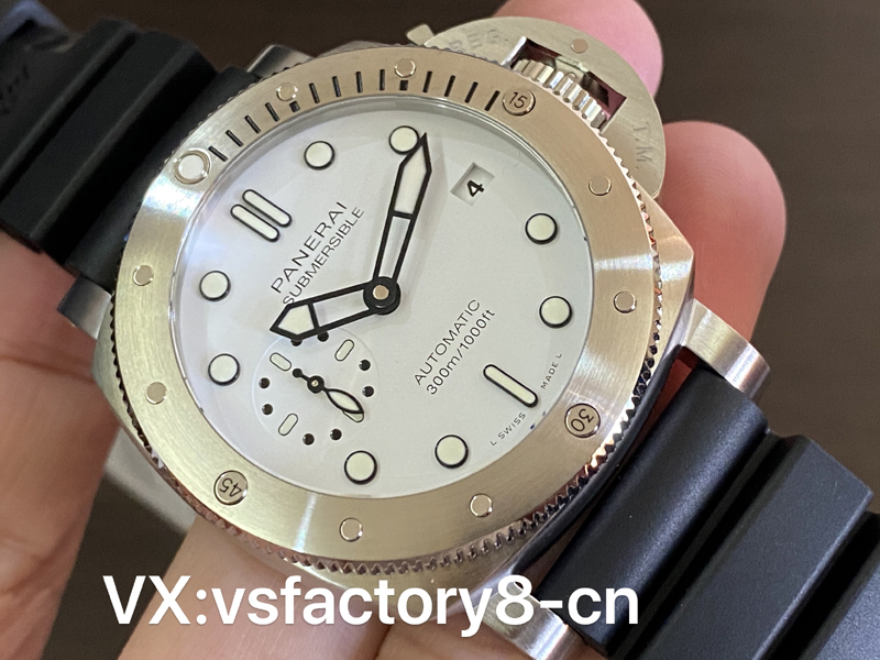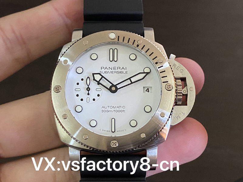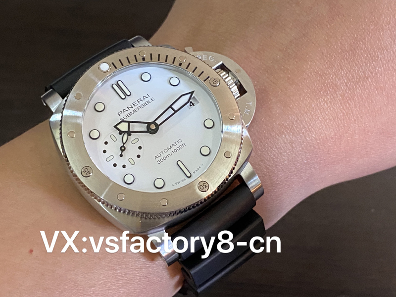 2023年VS廠手表官網新款:VS廠沛納海復刻表PAM2223,直徑42毫米,白色表盤搭配黑色表帶,沿襲潛行系列標志性設計及性能,適配露營、遠足、登山、深潛等各種場景;