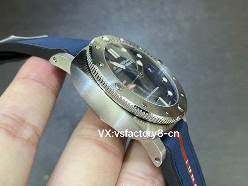 VS廠沛納海1391復(fù)刻表配備有品牌專利一直表冠護(hù)橋裝置,表冠也同步正品也做了橡膠涂層處理,已讓佩戴者更好的抓握調(diào)節(jié),加上單向旋轉(zhuǎn)表圈,用于下潛時(shí)間計(jì)算,都可長時(shí)間承受水下壓力,整表防水性能50米。