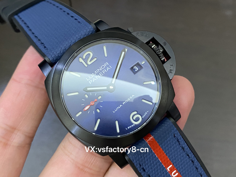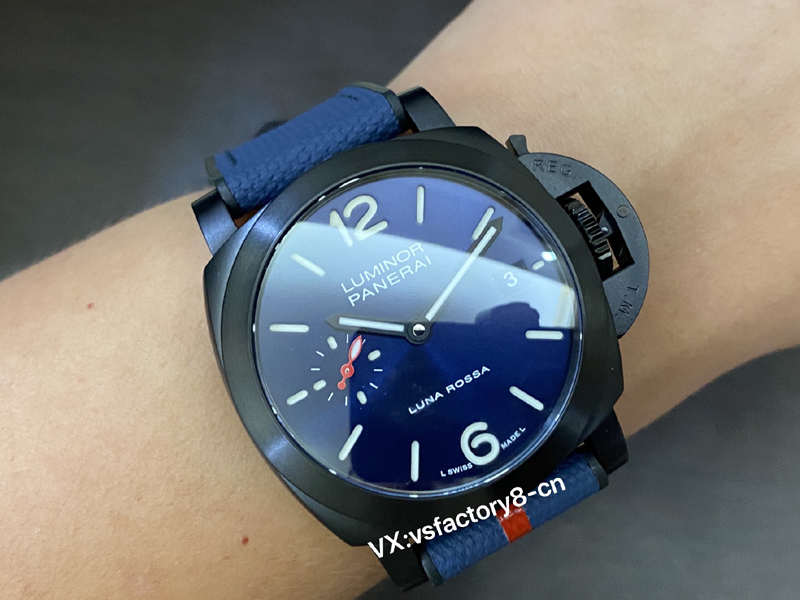 2024年八月份VS廠官網(wǎng)全新推出沛納海PAM1408復(fù)刻腕表,VS廠還原一致正品沛納海藍(lán)色太陽放射紋表盤,夜光阿拉伯?dāng)?shù)字及小時(shí)標(biāo)示;