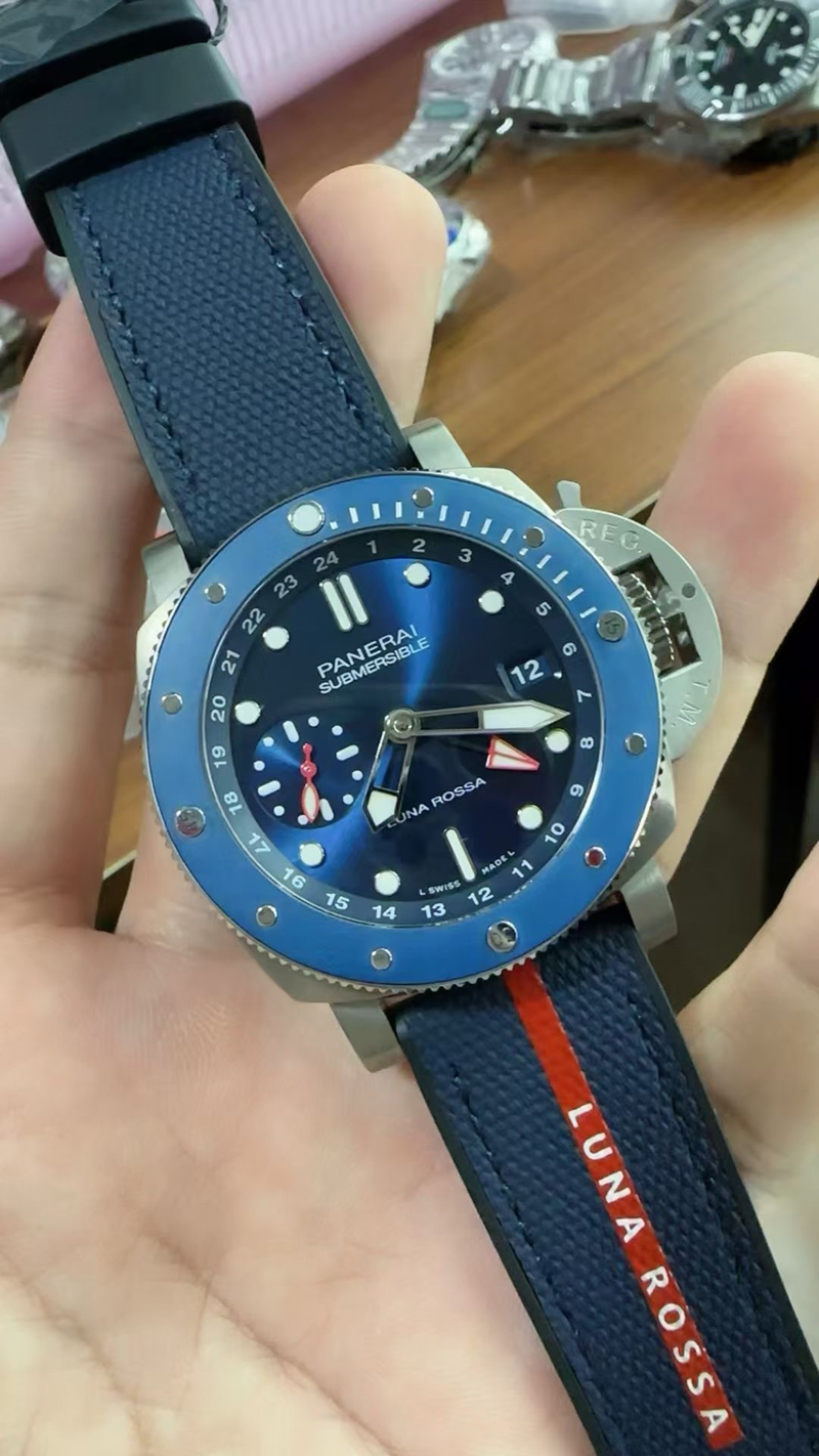 VS廠官網(wǎng)在今年的2024新品推出沛納海PAM1507潛行系列復刻表,GMT倆地時針的,紅色的指針,左邊小盤里面是秒針,單向旋轉(zhuǎn)的陶瓷圈口,轉(zhuǎn)起來圈口也比較緊實,表殼是拉絲的工藝,42表盤直徑適合大部分表友的手腕佩戴。