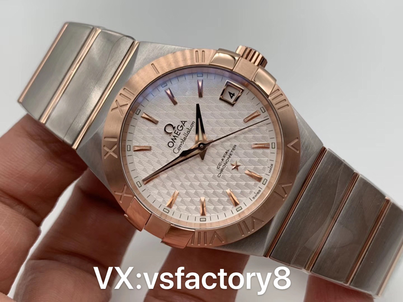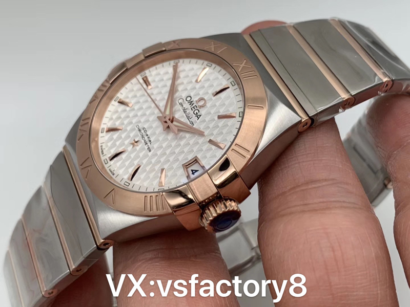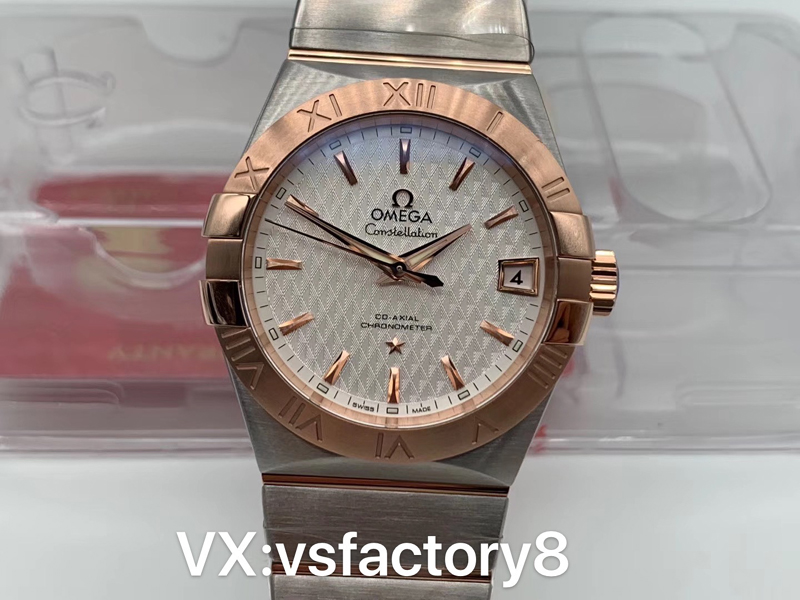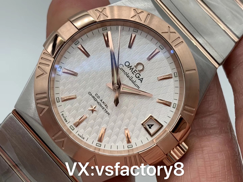 VS廠官網2019年新品歐米茄間玫格紋條釘白面星座才是歐米茄的精髓。