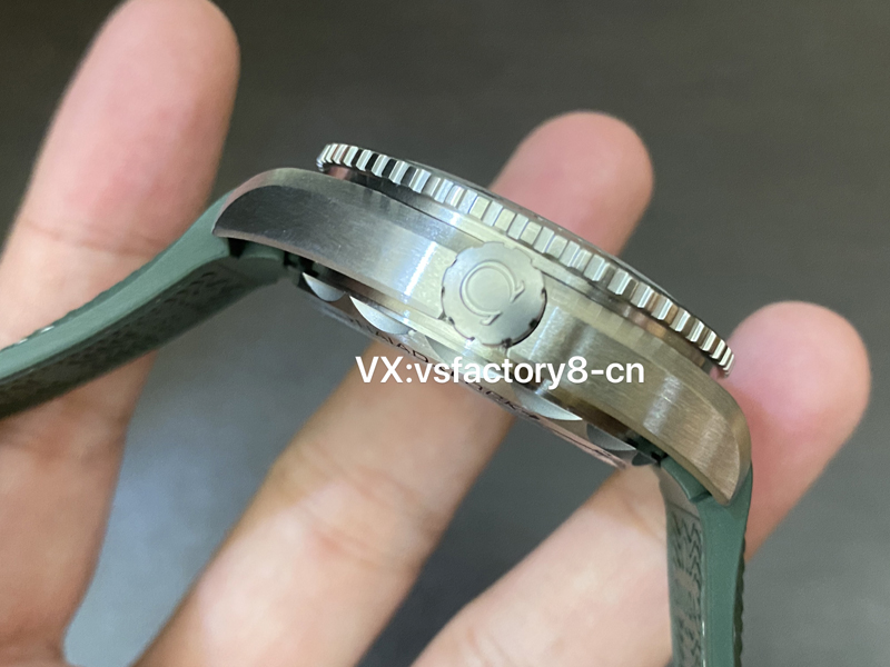 VS廠海馬600米鋼綠色海洋宇宙配備了跟正品一體式橡膠表帶,飾有網格紋理等細節元素。