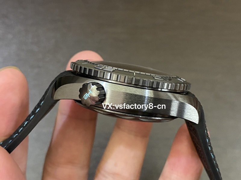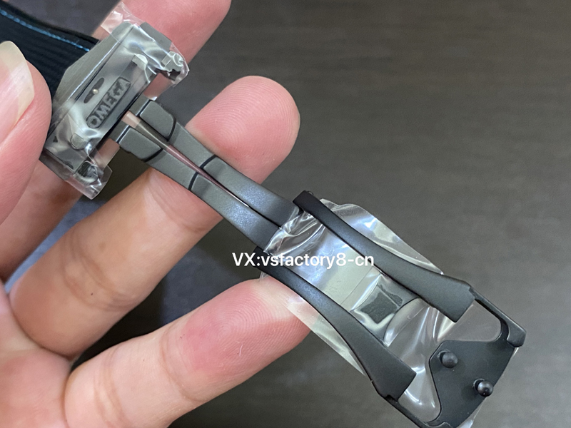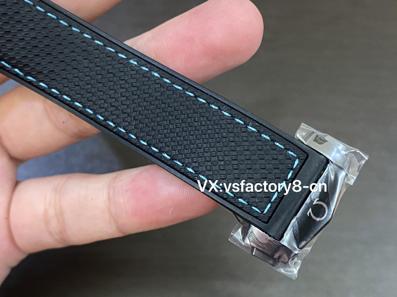 VS工廠搭配原版一致一體式黑色橡膠表帶,飾以綠松石色縫線,不僅在色彩上與表盤相呼應,更增添了一份時尚氣息。陶瓷與瓷化鈦金屬折疊表扣的設計,不僅堅固耐用,還確保佩戴的便捷與舒適。