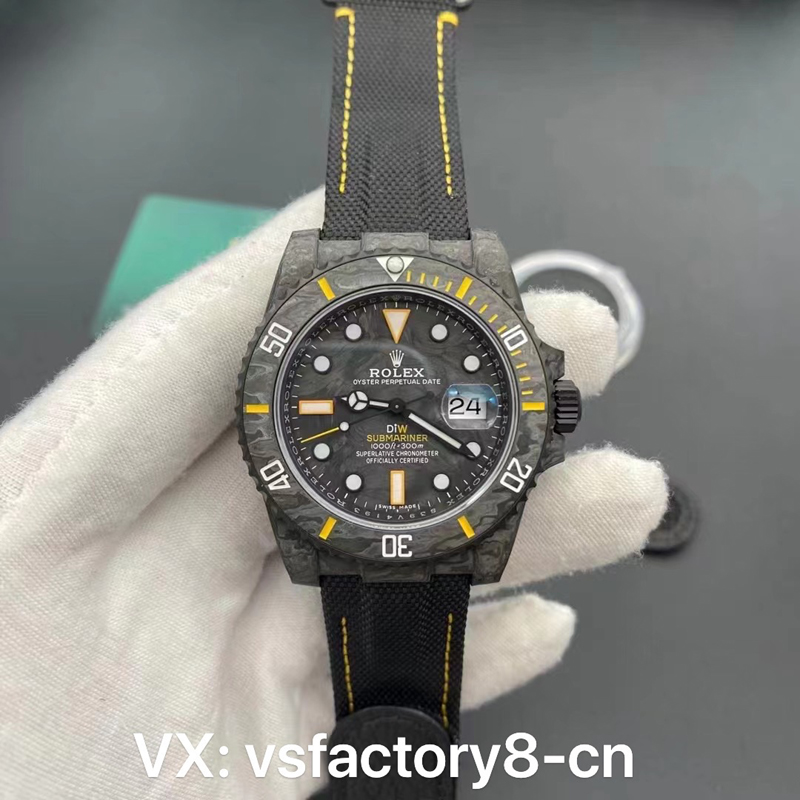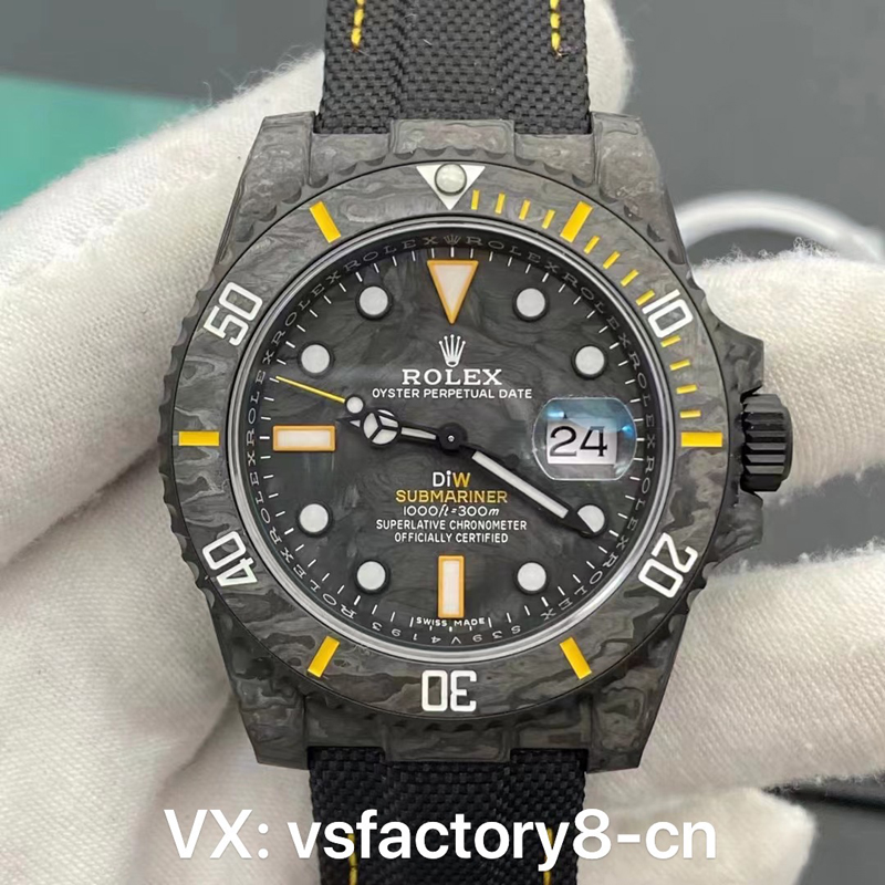 VS廠復刻表勞力士水鬼DIW碳纖維表殼也是非常的完美,復刻表采用碳纖維材質,顏色永不過時,整體的紋路是十分的完美。