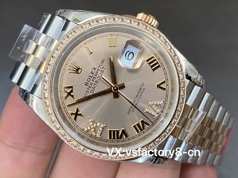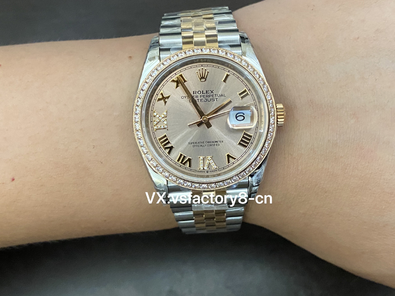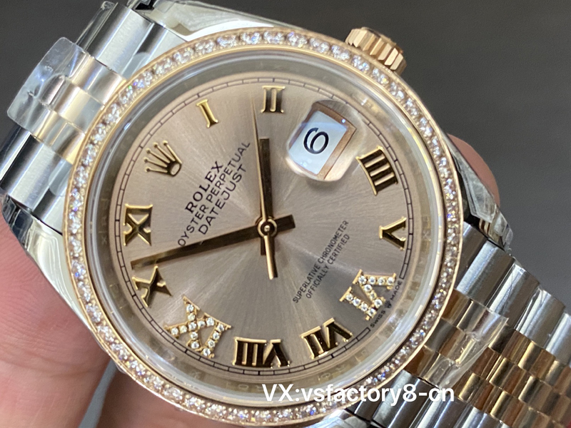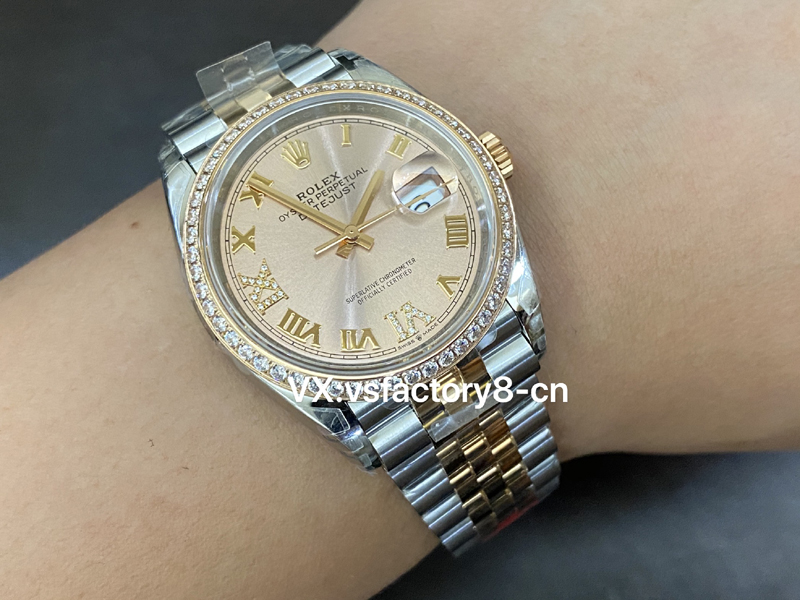 VS廠勞力士日志鉆圈粉面全面按照正品同步一致,并且實施了六點位置和九點位置都跟正品一致采納鉆石,當然VS工廠用的是臺灣莫桑鉆,并一比一羅馬數字,不再一眼假和露破綻!