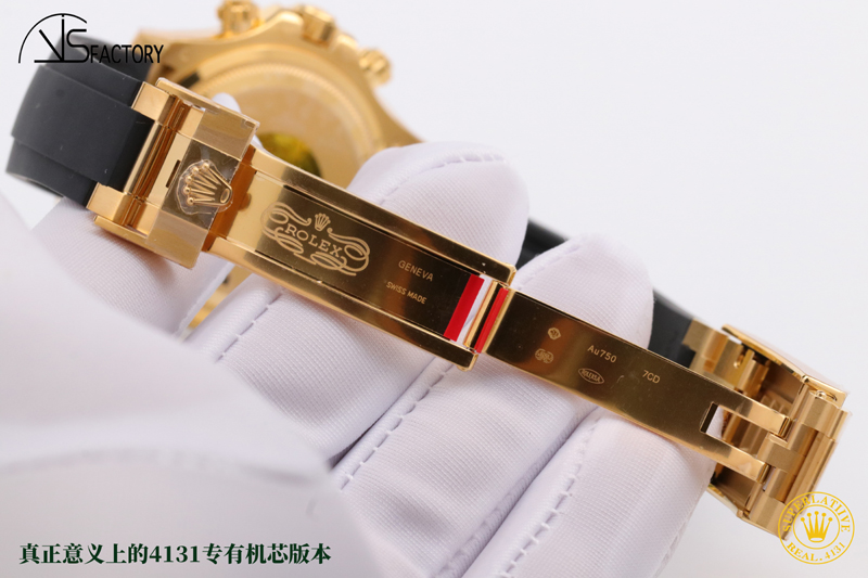 VS廠勞力士余文樂迪通拿真空電鍍18K金904L精鋼表殼搭配黑色天然橡膠表帶,折疊蠔式保險扣。