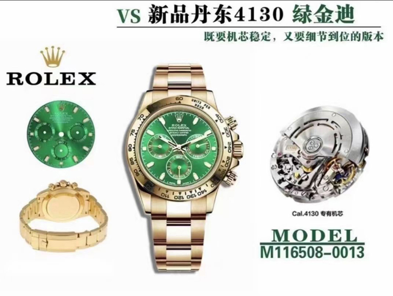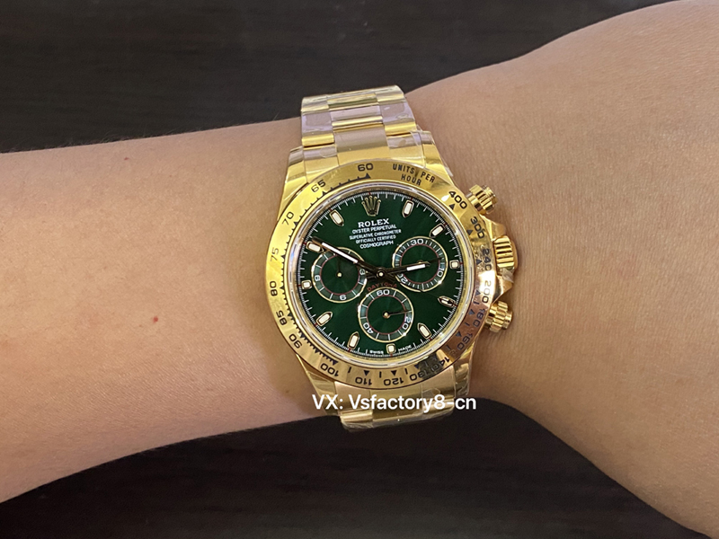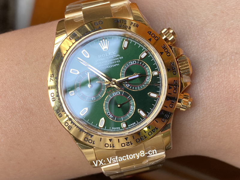 VS廠官網2024年十二月新品勞力士迪通拿綠金迪4130機芯,腕表直徑40mm ,搭載丹東Cal.4130專有機芯,既要機芯穩定,又要細節到位的版本。