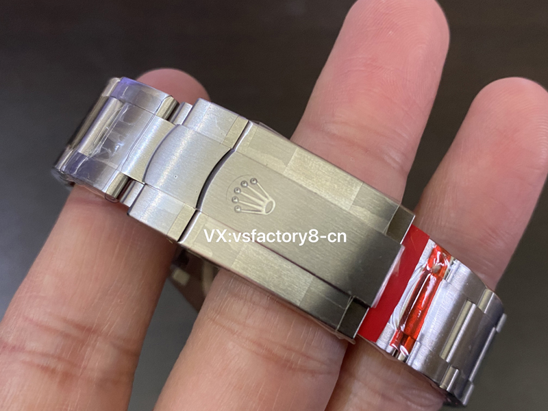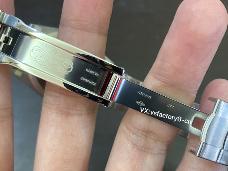 VS廠手表官網對于細節的追求大家有目共睹,表扣上的logo也是工藝的一大突破。cnc雕刻,形狀規整 并且內側伴有亮光處理。