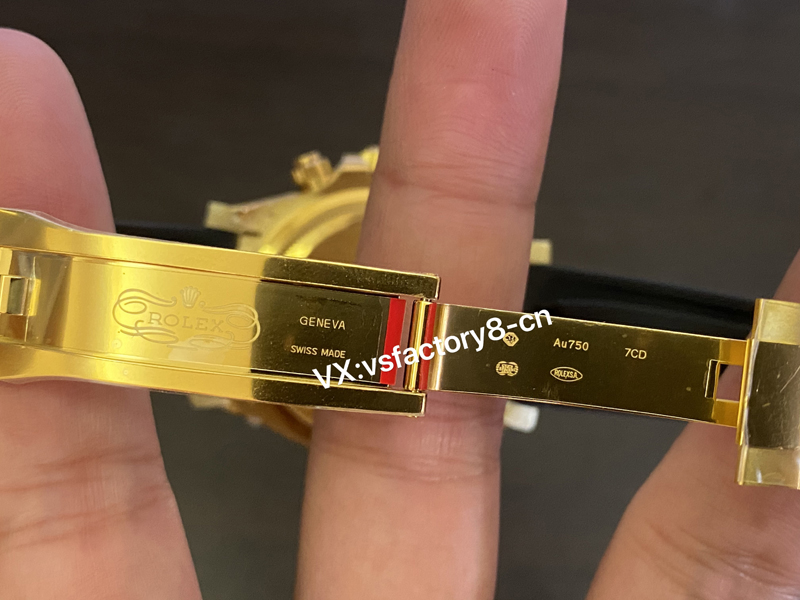 4,VS手表廠所有玫瑰金和金色扣,采用散件電鍍與原版一致是“鋼色”彈片,非市場版本是金色的,整件電鍍,節約成本。