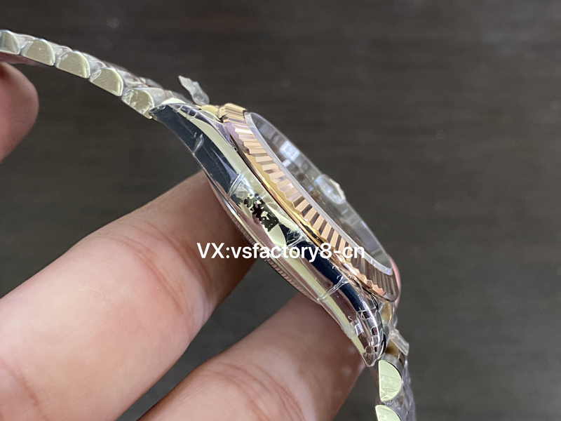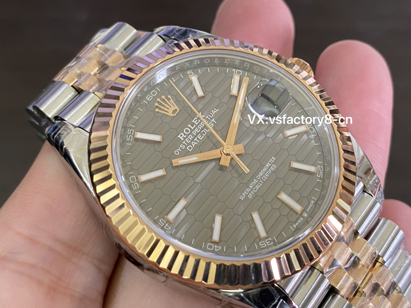 VS廠勞力士41m間玫瑰金石板灰水紋面日志日志41M“面”好,表盤太陽紋清晰細(xì)膩,淡雅光澤,隱約而獨特,隨著手腕擺動顯不同光澤。